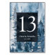 Winter Watercolor Forest & Navy Blue & White Table Number