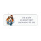 Winter vibes return address labels featuring a cute watercolor Beagle wearing a hat and a scarf. Customisable.
