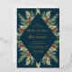 Invite guests to your winter wedding with our beautiful Watercolor Pinecone wedding invitations. The invitations feature your names and wedding details in gold foil lettering framed by a border of brown watercolor pine cones and green pine branches on a navy background. The invites reverse to a solid navy background. Perfect for winter and holiday weddings. Designed to coordinate with our Winter Watercolor Pine Cone wedding collection.