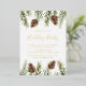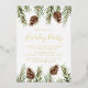 Elegant holiday party invitations featuring brown watercolor pine cones and green pine branches at the top and bottom of the invite. Personalise the pine cone holiday invitations by adding your party details in real gold foil lettering. The gold foil holiday party invites reverse to a solid forest green background. The pinecone invitations are perfect for holiday and Christmas parties. Designed to coordinate with our Winter Watercolor Pine Cone collection.