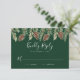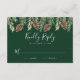 Elegant, rustic wedding RSVP card featuring a top border of brown watercolor pine cones and green pine branches with a forest green background. Personalise the winter wedding RSVP card by adding your preferred response date and custom accepts/regrets wording. The card reverses to a solid light green colour. Designed to coordinate with our Winter Watercolor Pine Cone wedding collection. An elegant response card perfect for winter weddings.