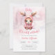 Winter watercolor pink baby deer girl invitation