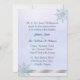 Lovely Winter wedding invitation done in a crystal ice pastel background, a silver tone sparkly ribbon running across the middle and a set of three pretty pastel glitter looking snowflakes decorating the front, of the card. The back of the invitation has the same background, with the silver tone sparkling ribbon, at the bottom and decorated with one snowflake, and one snowflake decorating the top right corner. Black text is ready to personalise for your Winter wedding event.