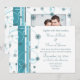 Winter Holiday Wedding photo invitations in classic turquoise and white with elegant snowflake and swirl design, Customisable with your wedding details. Available in matching winter holiday stamps, envelopes, labels and cards. Perfect for a Christmas or winter wedding.