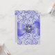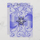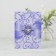 Winter wedding invitations feature a beautiful, elegant design of faux deep blue glitter swirls over top a powder blue-white background. The front also features a faux satin ribbon decorated with a silver shimmer snowflake. Over top of the snowflake is an elegant small pearl. Note: these invitations are printed artwork. They are not made with jewels or fabrics. The back features the same design of swirls with a small faux satin strip and snowflake embellishment. The background behind the text features a faux silver shimmer design. Each wedding invitation comes with a white envelope.