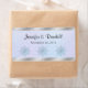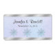 Elegant Winter snowflakes wedding mini wine label, with a snowy pastel background and silver ribbons, on the top and bottom of the label. Graphics of sparkly looking pastel snowflakes decorate the bottom. Personalise the dark grey text to suit your event needs. Perfect for weddings favours tags and mini bottles of wine. Matching products available.