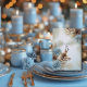 Winter Wedding table number card with beautiful brown, white and blue pinecones, pine branches and gold accents. Personalise text and font to your liking. #generativecontent