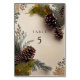 Beautiful Winter Wedding table number card  with pretty pine cones, pine branches and gold accents.