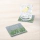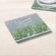 Winter wedding pine trees lake green grey and white snow art paper drinks coaster. Winter wedding green pine trees by the lake with white snow, gouache and watercolor art paper coasters. Personalise with your own wedding details. Ideal for a Christmas, green and grey or lakeside winter wedding. Other matching items available. © Original painting and design by Sarah Trett www.sarahtrett.com for www.mylittleedenweddings.com