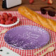 Winter wedding purple pine trees by the snow covered lake art paper plates. Winter wedding purple and white snow covered pine trees by the lake art napkins. Personalise with your own wedding details. Ideal for a Christmas or lakeside winter wedding. © Original painting and design by Sarah Trett www.sarahtrett.com for www.mylittleedenweddings.com