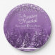Winter wedding pine trees lake purple art paper plate