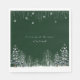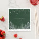 Winter Wedding Pine Trees Snowflakes paper napkins have a beautiful dark green background with snow covered Pine Trees, white Winter trees, snowflakes and pretty hanging sparkle effect. Personalise with your information, customise for use as Winter Wonderland Sweet 16  invitation or Christmas card.