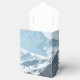 This beautiful mountain wedding favour box features a powerful photograph of snow capped mountains in the winter. Add your names in blue script over the snowy hills. Perfect photography for a cold weather wedding.