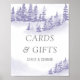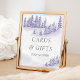 Winter wedding sign with scenic watercolor design in shades of lavender and grey. The snow scene features a romantic mountain forest landscape with pine trees, drifts and a light snow flurry. All of the text is editable, including the "Cards & Gifts" title and you can of course change the names. If you would like matching products, please browse my Winter Forest collection