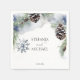 Winter wedding / engagement watercolor snowy pines editable template personalised napkins. Snowy pines with pine cones snowflake muted Scandinavian winter colours modern casual font winter wedding tableware