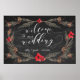 Welcome your guests to your winter wedding with this floral chalkboard poster design.