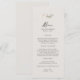 Winter wedding White Rose Pine Bough reception menu. Long. Tan. Neutral.