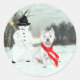 Winter Westie with a Snowman Classic Round Sticker