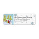 COLOR PALETTE: Modern Christmas Trend of Light Blue and White with lime yellow, gold, green and red. DESIGN COLLECTION: Personalised with your own family name and address, using the easy template field, you can create your own custom return adddress labels, package toppers or envelope seals. This is whimsical, fun, Christmas and Winter themed sticker, seal or package decoration set that has been made of hand panted watercolor artwork from Audrey Jeanne Roberts. The Christmas trees are decorated with a draped red garland, swirling star tree toppers in piles of snow with hand made star snowflakes falling in the background and a cute penguin is playing with a stack of gift wrapped packages topped with a red bow and a cute, whimsical bird with a swirl tail. There are also red snowflake stars in the background of the label. This design is available on a wide range of products.
