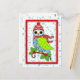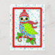 Wearing a red and white striped scarf and hat, this colourful Winter owl is all dressed for a holiday celebration. Background is blue snowflakes on white with a red border.