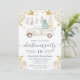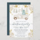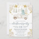 Elegant Watercolor Winter Gold Floral Pine Trees design with a white truck, snowman, gold snowflakes and white and gold glitter flowers