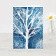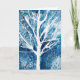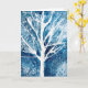 Winter theme blue and white watercolor painting of a white birch tree with snow background. Arty original artwork with a Christmas theme. Blue and white Christmas.