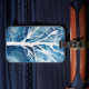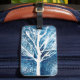 Winter theme blue and white watercolor painting of a white birch tree with snow background. Arty original artwork with a Christmas theme. Blue and white Christmas.