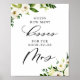 How many kisses for the soon-to-be Mrs? Add this botanical sign to your bridal shower. it features watercolor floral bouquet of white flowers and foliage. This floral "How Many Kisses" sign is perfect for winter and spring bridal showers.