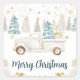 Elegant Winter Gold Floral Pine Trees design with a white truck, snowman, gold snowflakes and white and gold glitter flowers