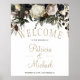 Winter white peonies elegant welcome wedding sign
