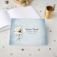 Chic wedding guest book done in a frosty aged light blue colour with graphics of a winter white poppy with a white bow. Personalise the text, on the front of the guest book to read what you want. Matching wedding products are available.
