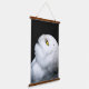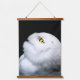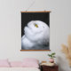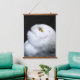 Portrait photograph of a beautiful white Snowy Owl with yellow eyes on black background.