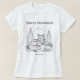 A stylish t-shirt for the holidays, featuring a line art illustration of a fox in a snowy winter landscape. The fox is pictured in front of evergreen trees and a starry night sky. With greeting 'Merry Christmas' at the top and text for you to customise below the picture, the t-shirt makes a stylish choice for the festive season.