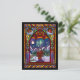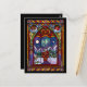 Send your holiday wishes with this cozy stained glass Christmas card