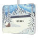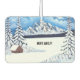 An air freshner with a beautiful winter scene including snow covered cabin, mountain and evergreen. The background, image and text can be customised. Original artwork by W.B.