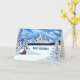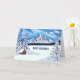 A Christmas card with a beautiful winter scene including snow covered mountains, evergreens and rustic cabin. The image and text can be personalised. You also have the option to delete the text. Original artwork by W.B.