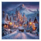 A breathtaking digital art illustration depicting a charming winter village nestled at the foot of a majestic mountain. The village is enveloped in a blanket of snow, with a winding path leading towards a grand castle illuminated by warm, inviting streetlights. The scene is bathed in the soft glow of twilight, creating a captivating and enchanting atmosphere.