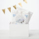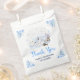 This cute and whimsical watercolor birthday favour bag features a watercolor winter wonderland scene with adorable arctic animals, such as a polar bear, penguin, cat, whale, seal and a moose. In the background are snow capped mountains, ice caps and trees. The text combines handwritten script and sans serif fonts for a stylish and modern look. Falling snowflakes and beautiful blue floral arrangements give a winter feel. This is perfect for winter and Christmas birthday parties.