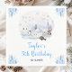This cute and whimsical watercolor birthday napkin features a watercolor winter wonderland scene with adorable arctic animals, such as a polar bear, penguin, cat, whale, seal and a moose. In the background are snow capped mountains, ice caps and trees. The text combines handwritten script and sans serif fonts for a stylish and modern look. Falling snowflakes and beautiful blue floral arrangements give a winter feel. This is perfect for winter and Christmas baby showers.