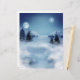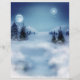 Beautiful snowy winter wonderland at night, with moon and stars.