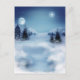 Beautiful snowy winter wonderland at night, with moon and stars.