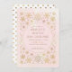 Beautiful winter One-derland birthday invitation. Soft pink with delicate text in a round frame format, surrounded by beautiful gold snowflakes.
