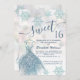 Winter wonderland blue dress glittery ombre snowflakes Sweet 16 invitation.