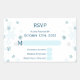 Design features winter blue snowflakes against a white background! This RSVP was made as an easy peal and stick version of our classic wedding RSVP card. Add it to your own card stock, the back of your wedding invitation, and more.