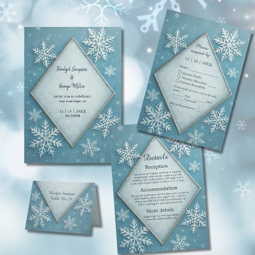 Step into a magical white winter wonderland with this romantic, cosy design featuring soft frosted florals, icy sparkle, and elegant snowflakes. The palette blends snowy blue, white, glittery accents, and subtle Christmas charm to create a timeless seasonal style—perfect for December weddings or festive celebrations. A touch of chilly elegance meets warm love with floral textures, gentle hues, and a modern romantic mood.