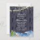 You will love this watercolor navy blue wood background with string of snow lights, watercolor blue mountains, green Christmas trees, Christmas candles and snow. Great for a winter wedding!