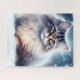 A fluffy gray cat enjoying a serene moment in a snowy landscape. The puzzle is sure to offer a delightful challenge while bringing the joy of this winter cat scene to those who assemble it.