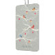 Lovely winter scene with white branches, colourful birds, falling snow and beautiful Christmas decorations.
