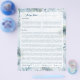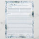 Magical winter wonderland snowy scene blue recipe binder insert sheets. Simple recipe sheet design that features evergreen branches, white berries, snowflakes and snow on a snowy icy ice blur background.