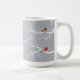 Lovely winter scene with white branches, colourful birds and a falling snow.